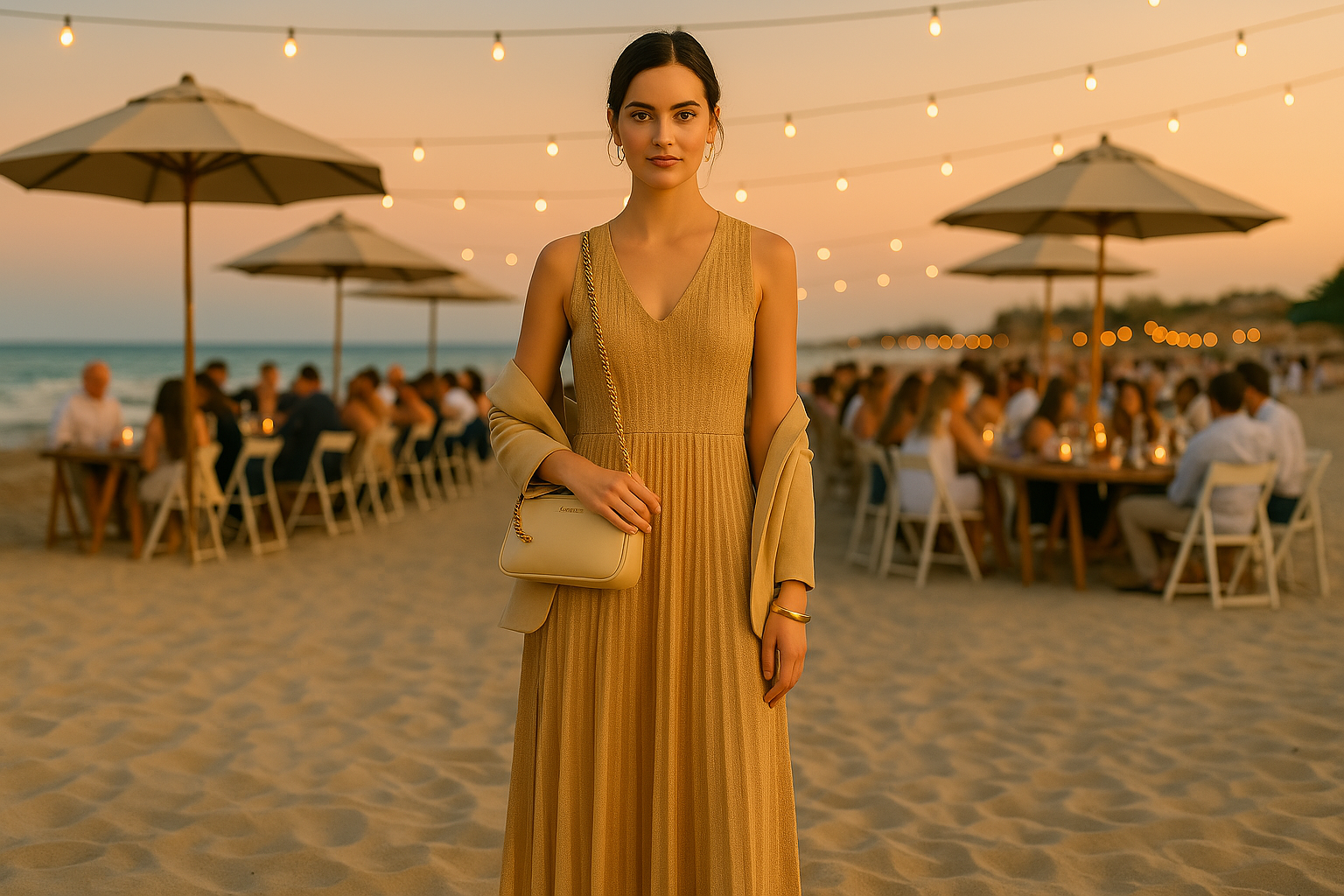 Quando la stagione suggerisce leggerezza, e il ritmo urbano richiede praticità, il sabbia e l’oro diventano complici di un’eleganza consapevole.