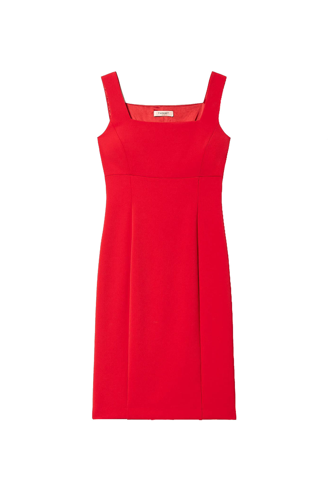 Abito fitted rosso in cady crêpe con scollatura quadrata