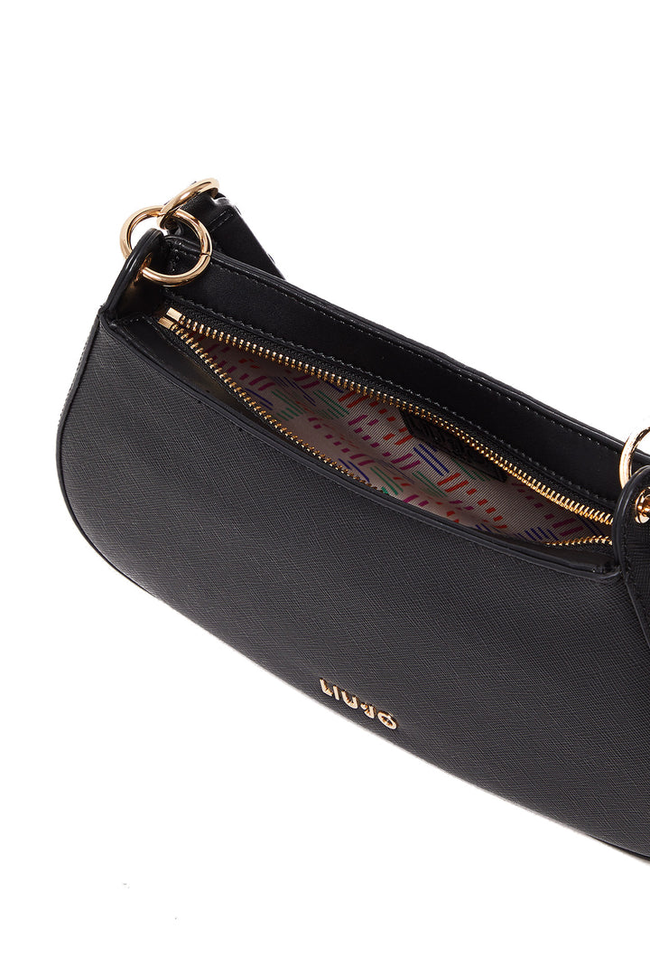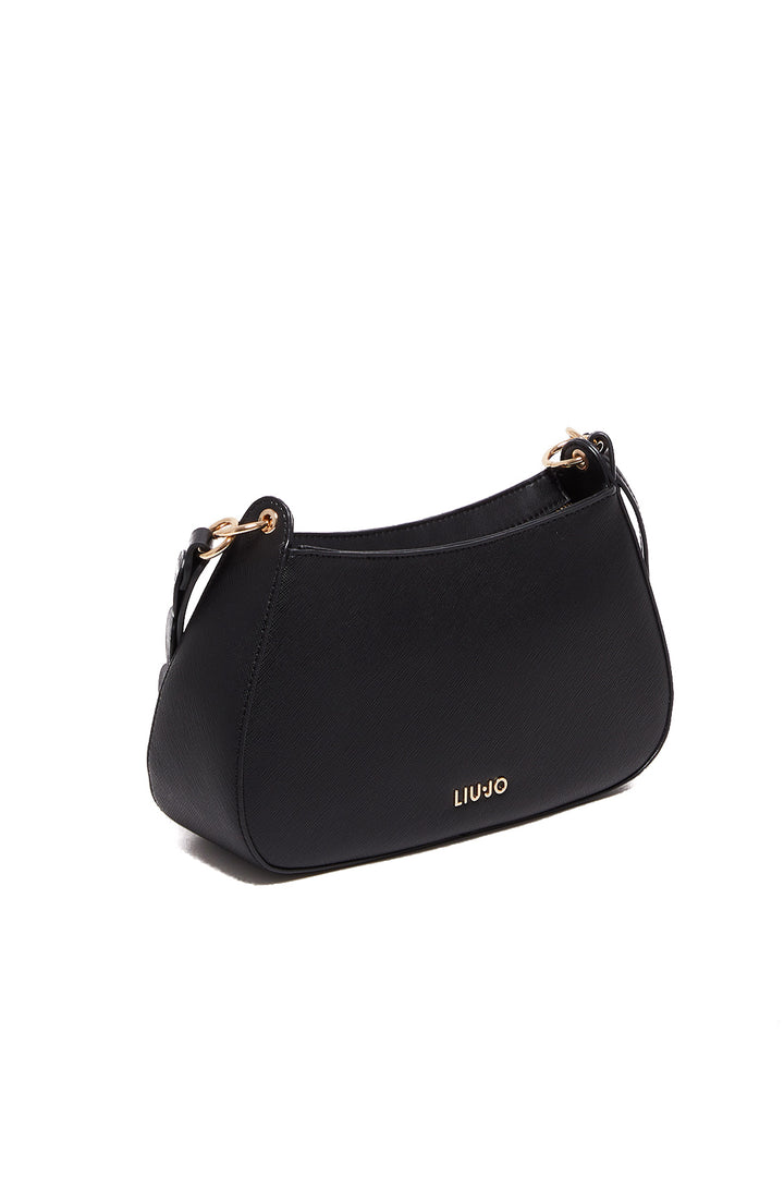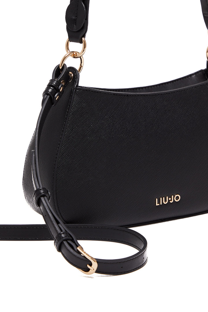 Less Impact, same style. Femminilità e glamour si traducono in amore e rispetto per l'ambiente, oggi più che mai. Inserita all'interno della proposta di collezione "Liu Jo Better", questa borsa nera è realizzata con almeno il 20% di fibre riciclate. Il procedimento limita l'utilizzo di prodotti chimici, e i criteri ambientali e sociali sono rispettati in tutte le fasi della filiera produttiva. Be Better, do better.