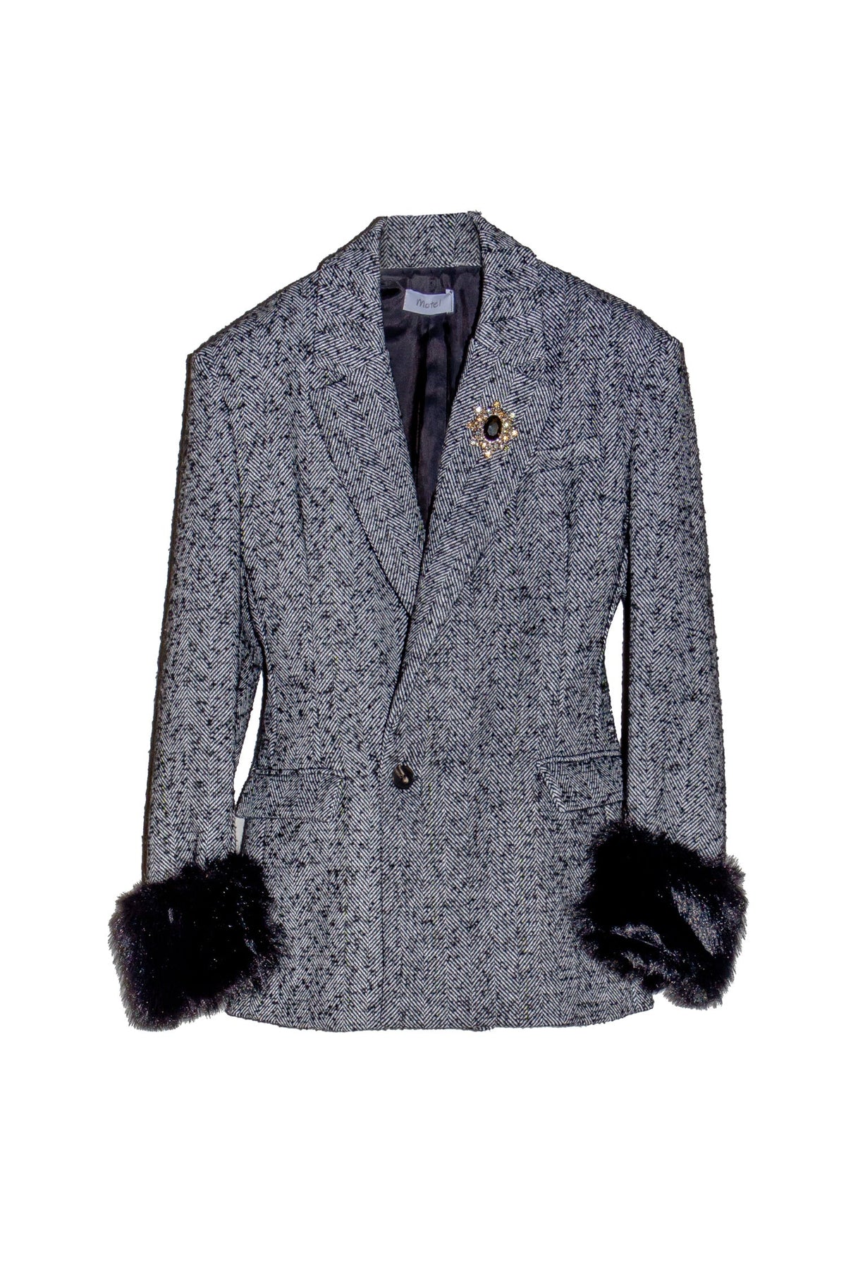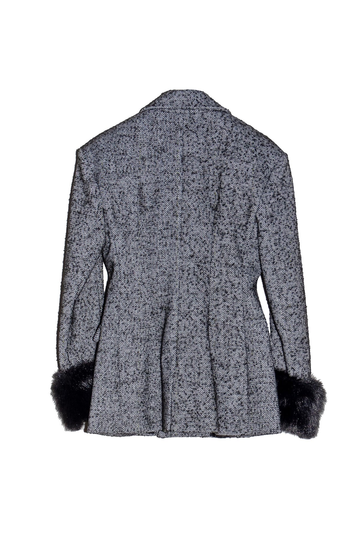 Giacca Grigia in Spina di Pesce con Dettagli in Pelliccia