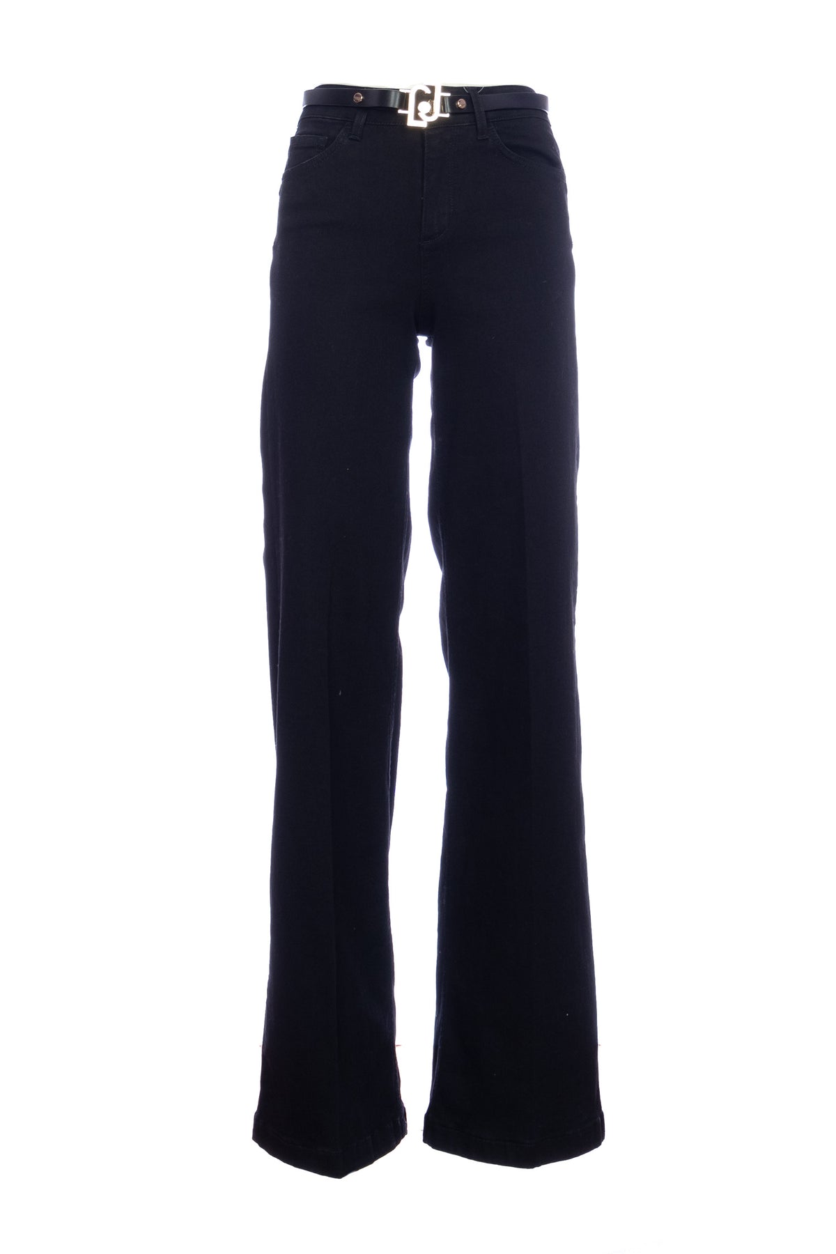 Jeans flare bottom up in denim nero di cotone stretch con cintura