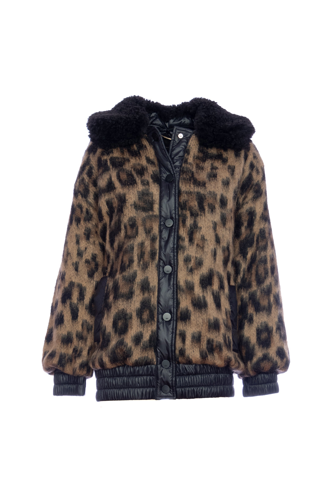 “Ieri” animalier down jacket in brushed knit with eco-fur collar