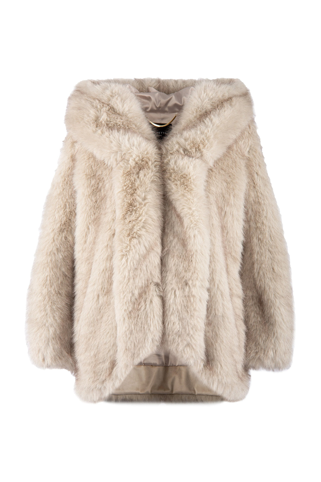 Short ivory “PEVY” eco-fur with openings on the sleeves