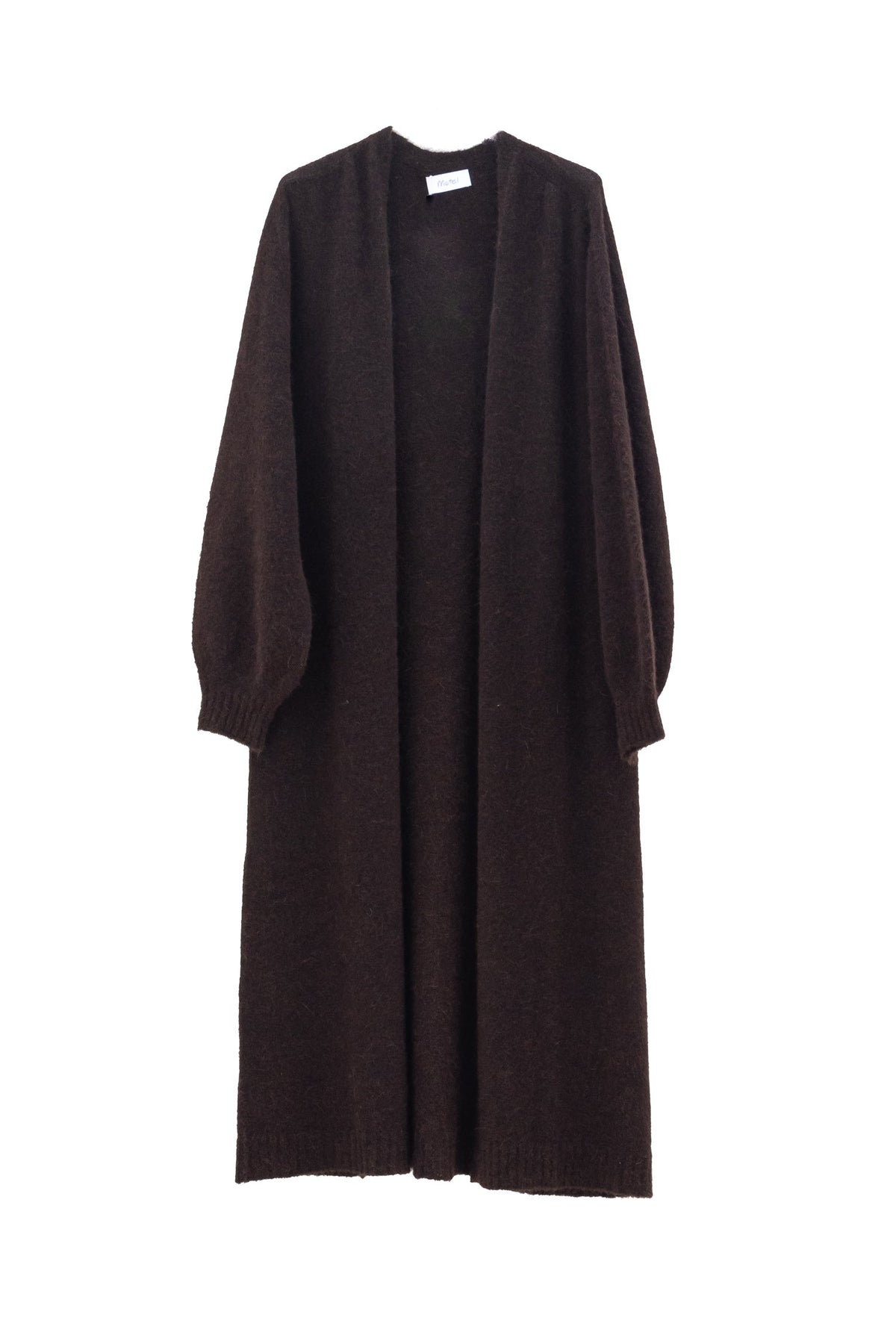 Long dark brown cardigan in alpaca and wool blend