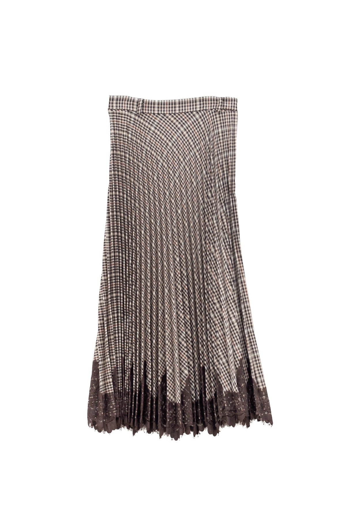 Pleated Check Skirt with Lace