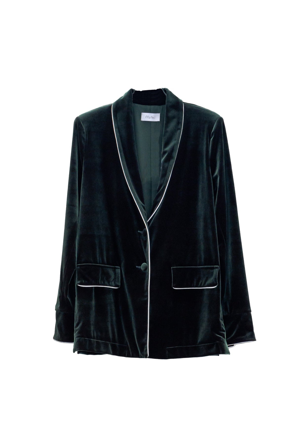 Dark green velvet-effect jacket with contrasting trim