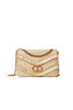 A refined straw bag ready to accompany you on all occasions. It is the 'Dreamy' shoulder bag with a loom-woven straw effect, with fringed details and diamond quilted workmanship. Shoulder strap with sliding chain for double carrying and shoulder strap, closure with flap and magnet. The metal Oval T logo on the front dial enclosed by a rope insert completes the refined design of the model.