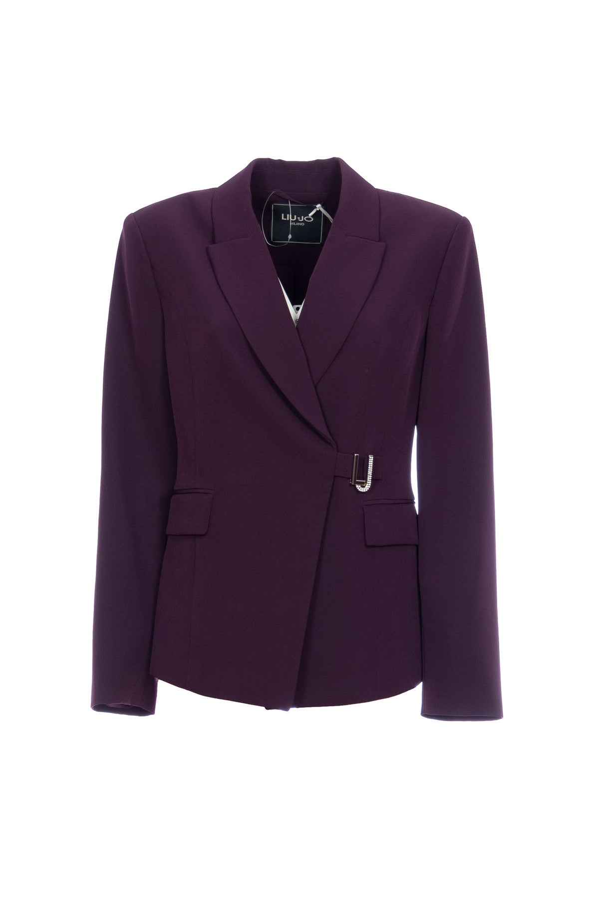 Blazer slim melanzana in tessuto tecnico stretch con chiusura con logo