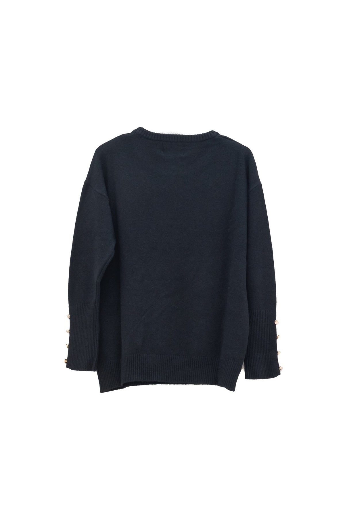Maglia girocollo panna con bottoni decorativiMaglia girocollo nera con bottoni decorativi
