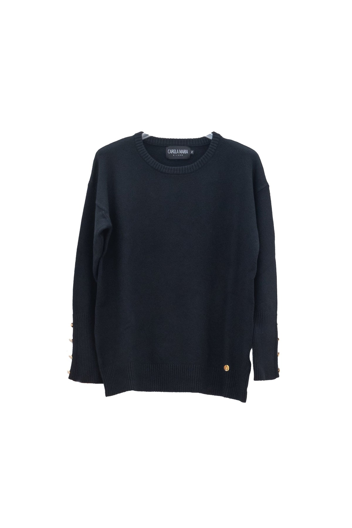 CAROLA MARIA Maglia girocollo nera con bottoni decorativi - Mancinelli 1954