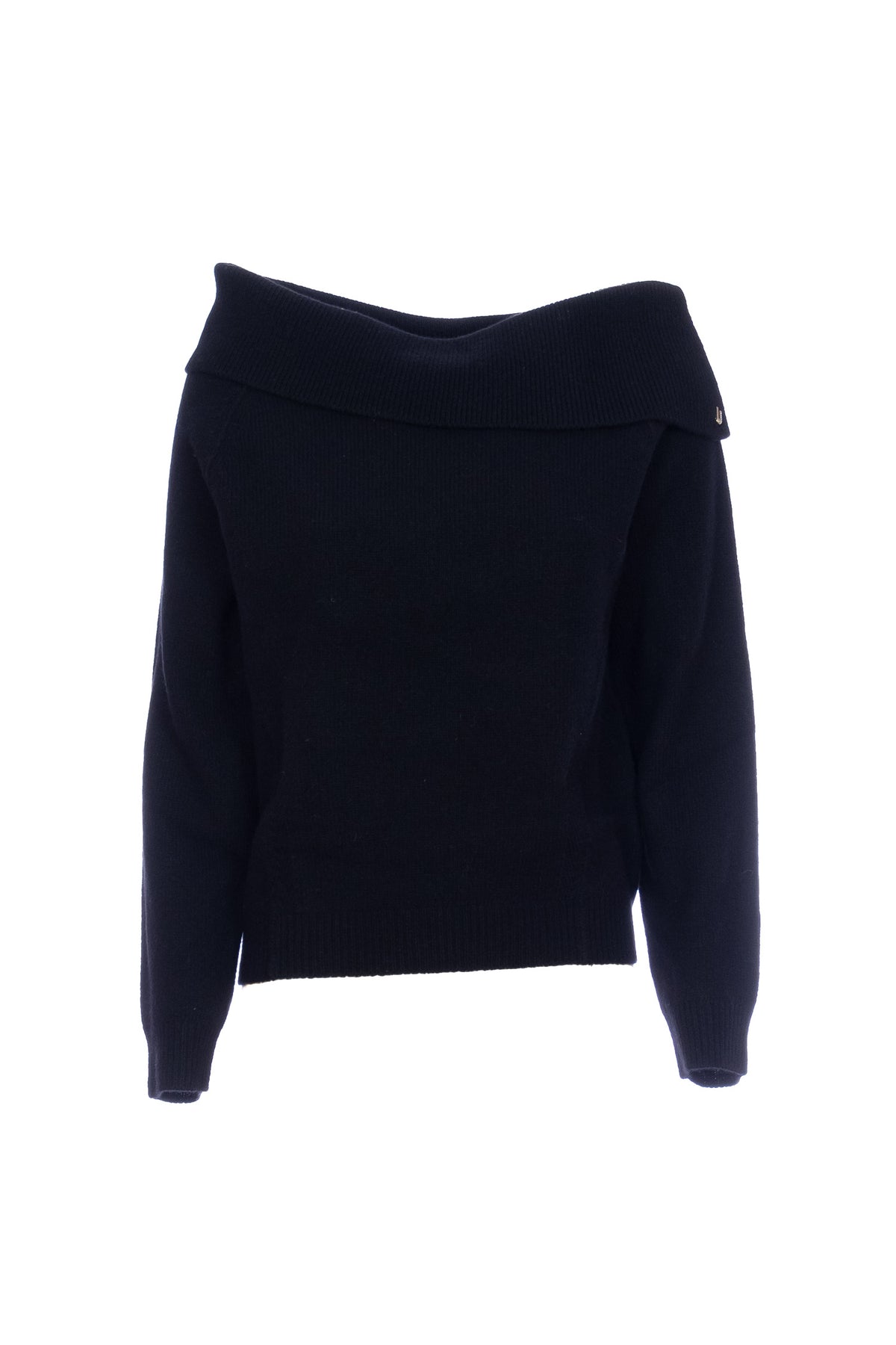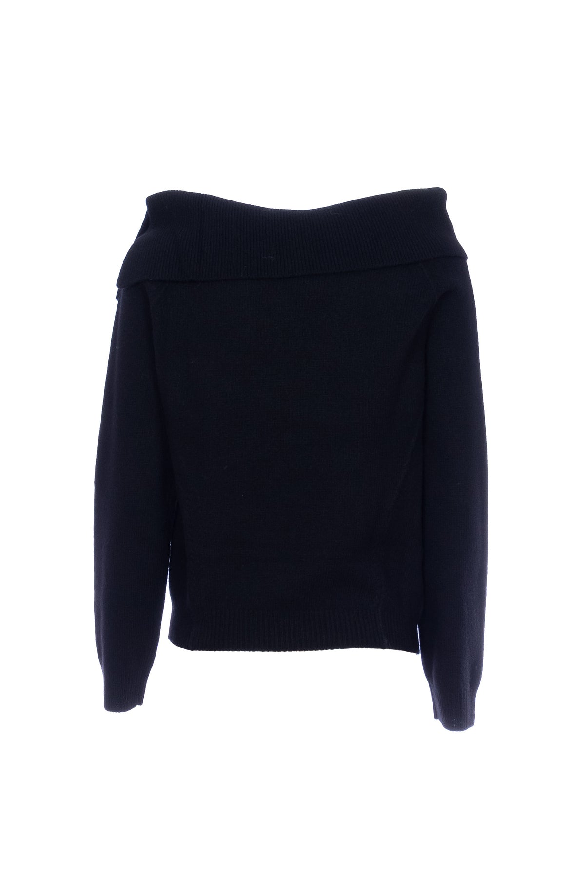 Maglia nera in lana con scollo bardot