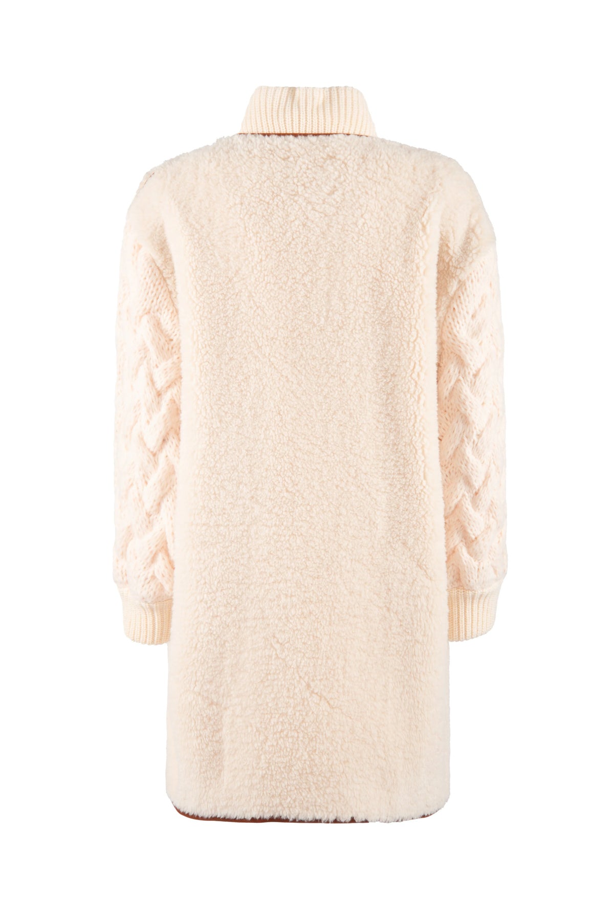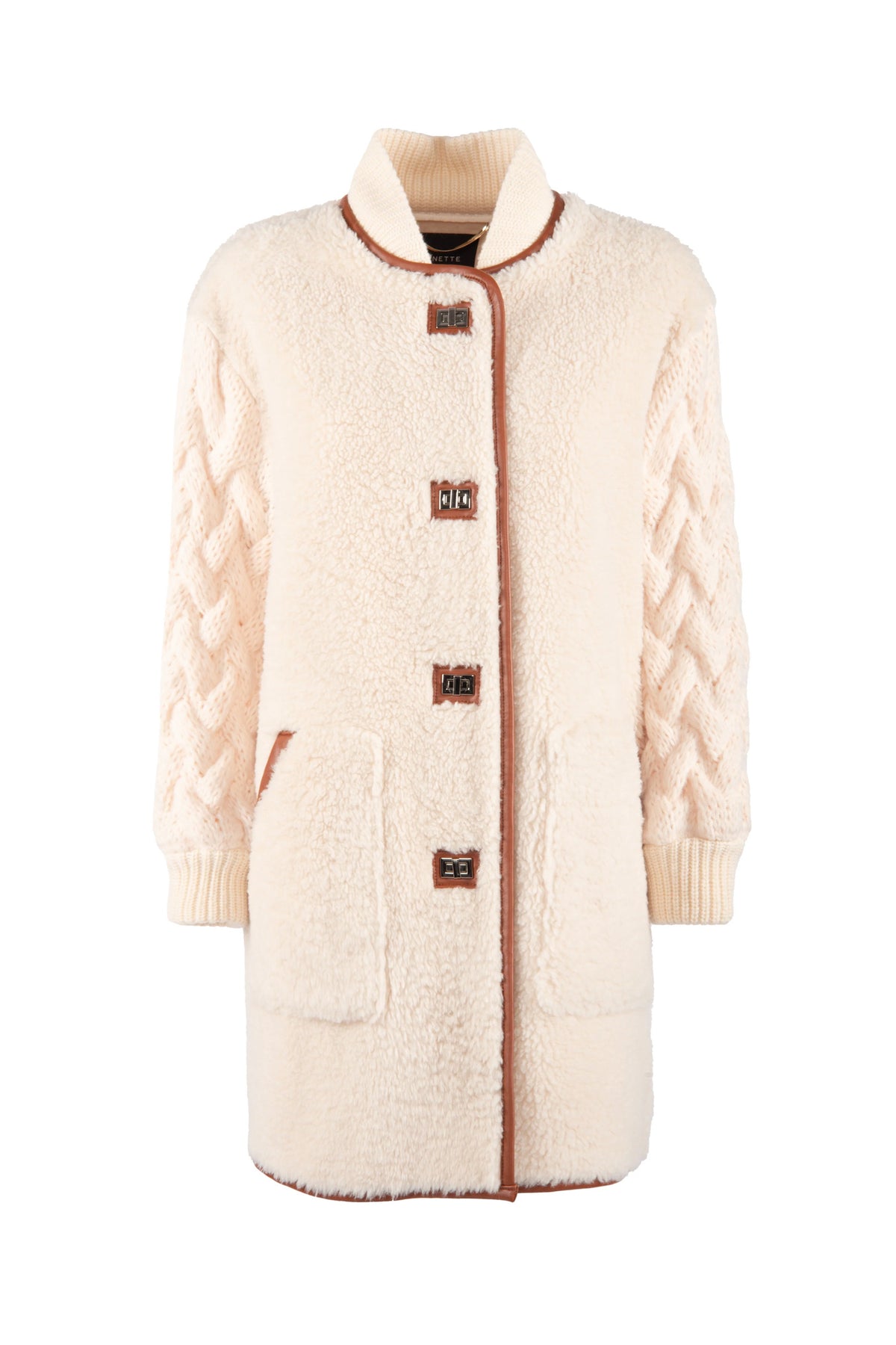 Giaccone “Pippi” avorio in ecoagnellino con maniche in maglia