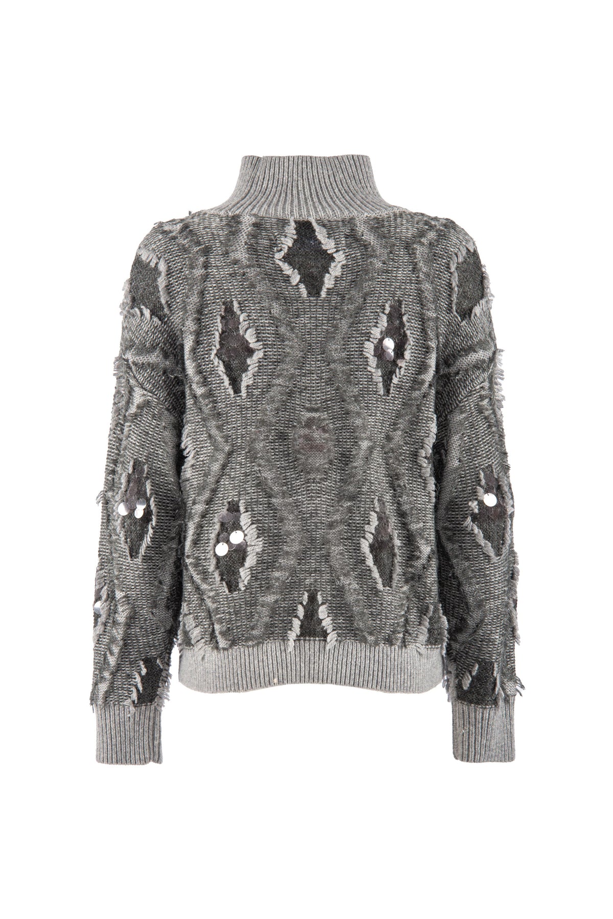 Maglia a collo alto “Muccino” grigia con motivo geometrico