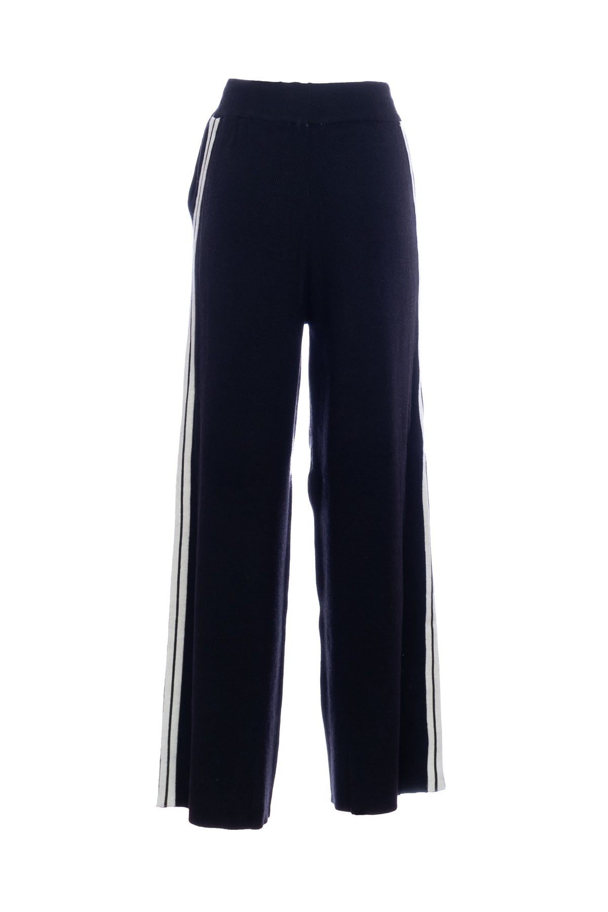 Pantalone ampio a palazzo nero in maglia con bande sui fianchi