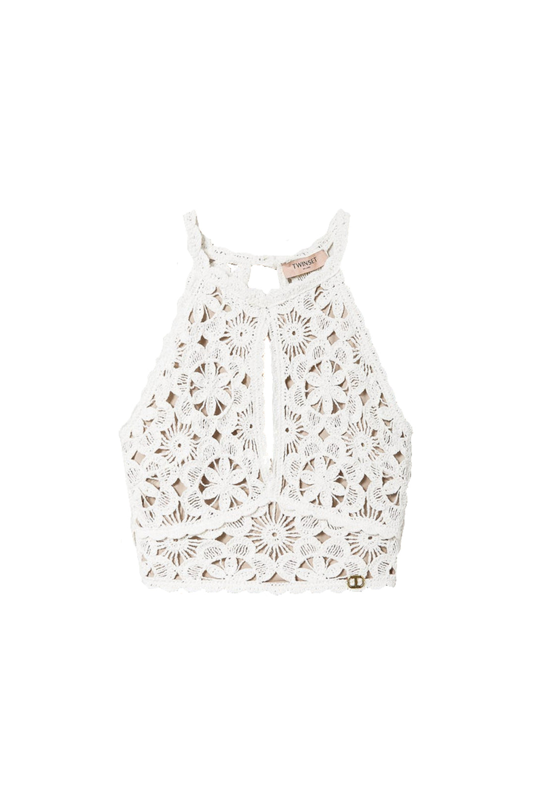 T-shirt MYFO blanc avec épaulettes et imprimé fleuri