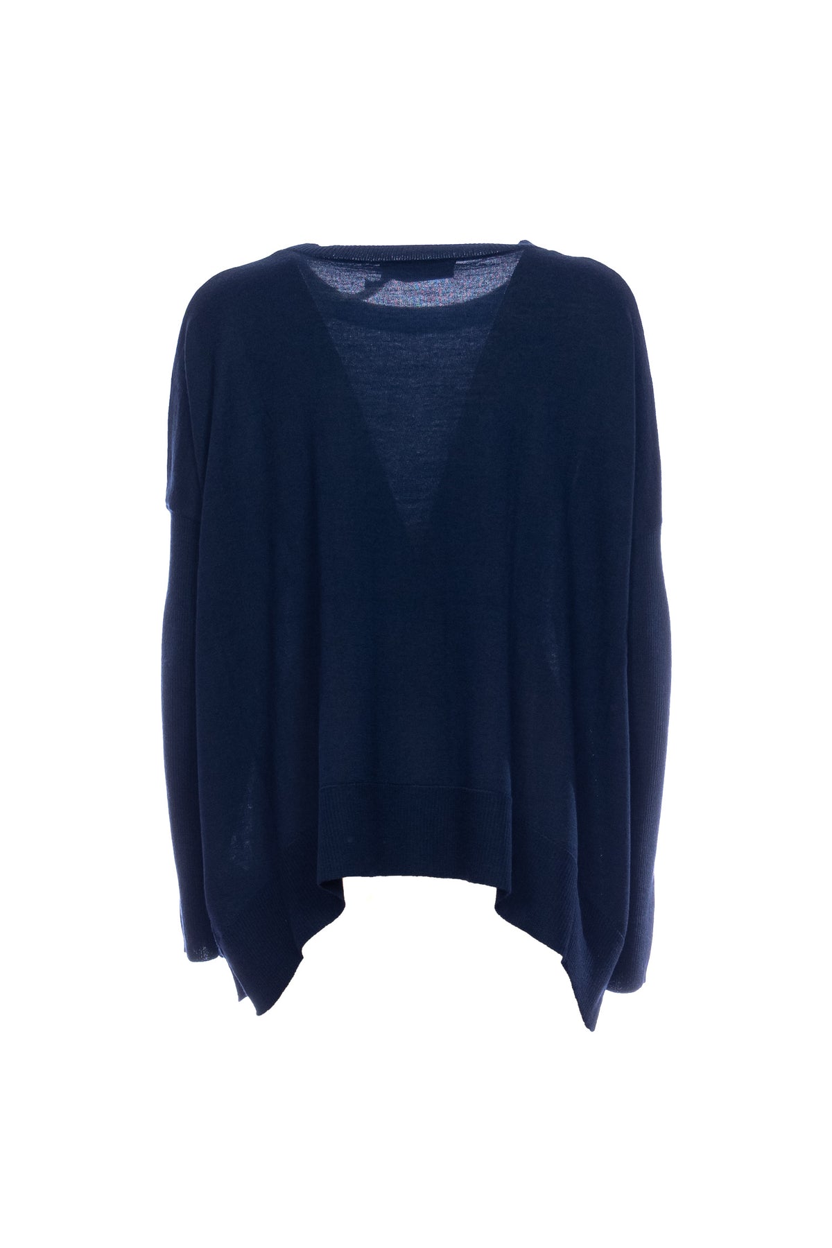 Maglia girocollo oversize blu notte in lana con logo e spalle scese