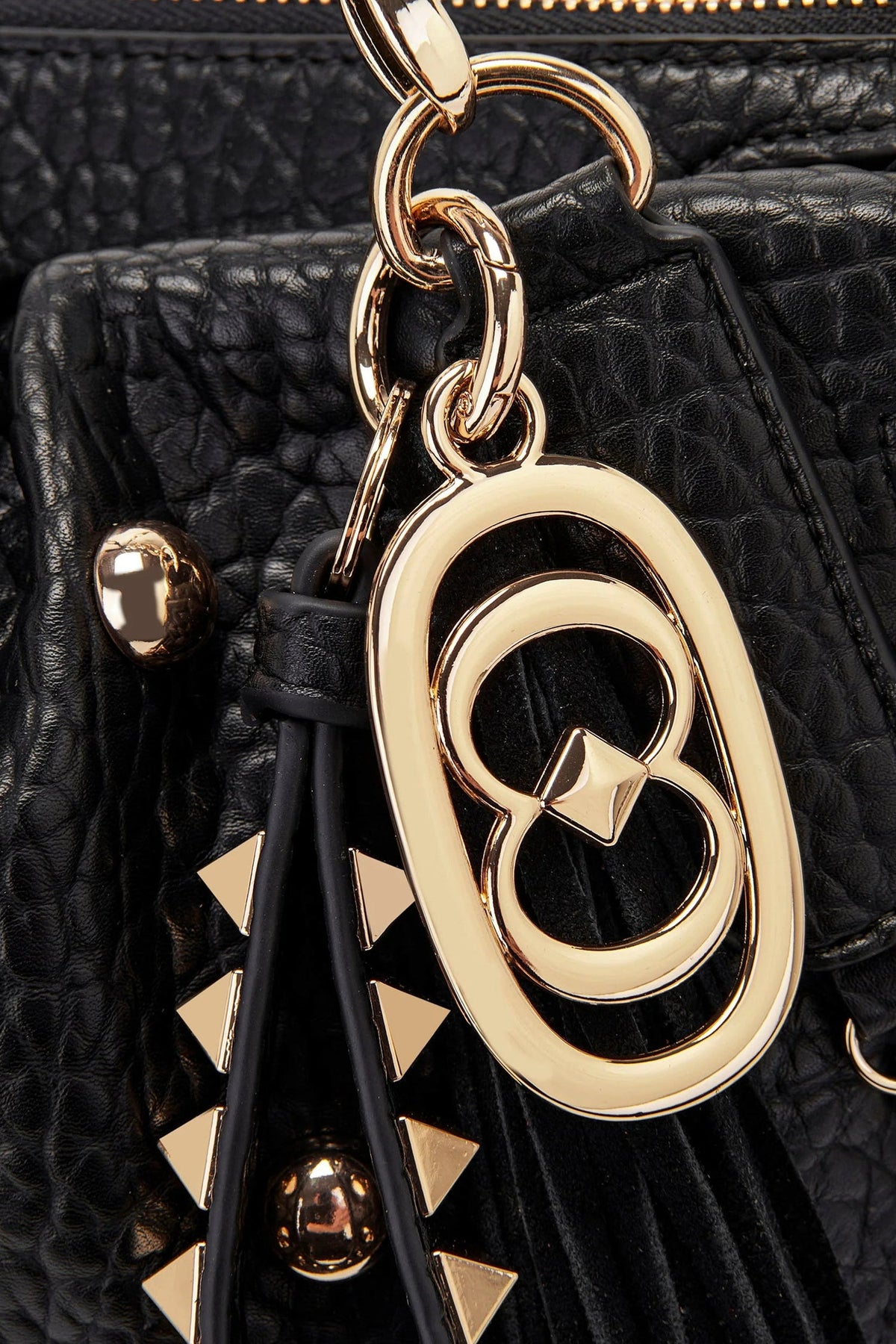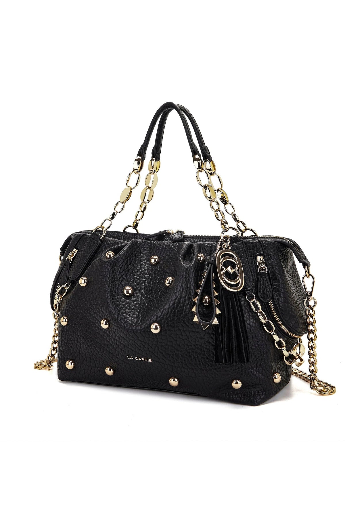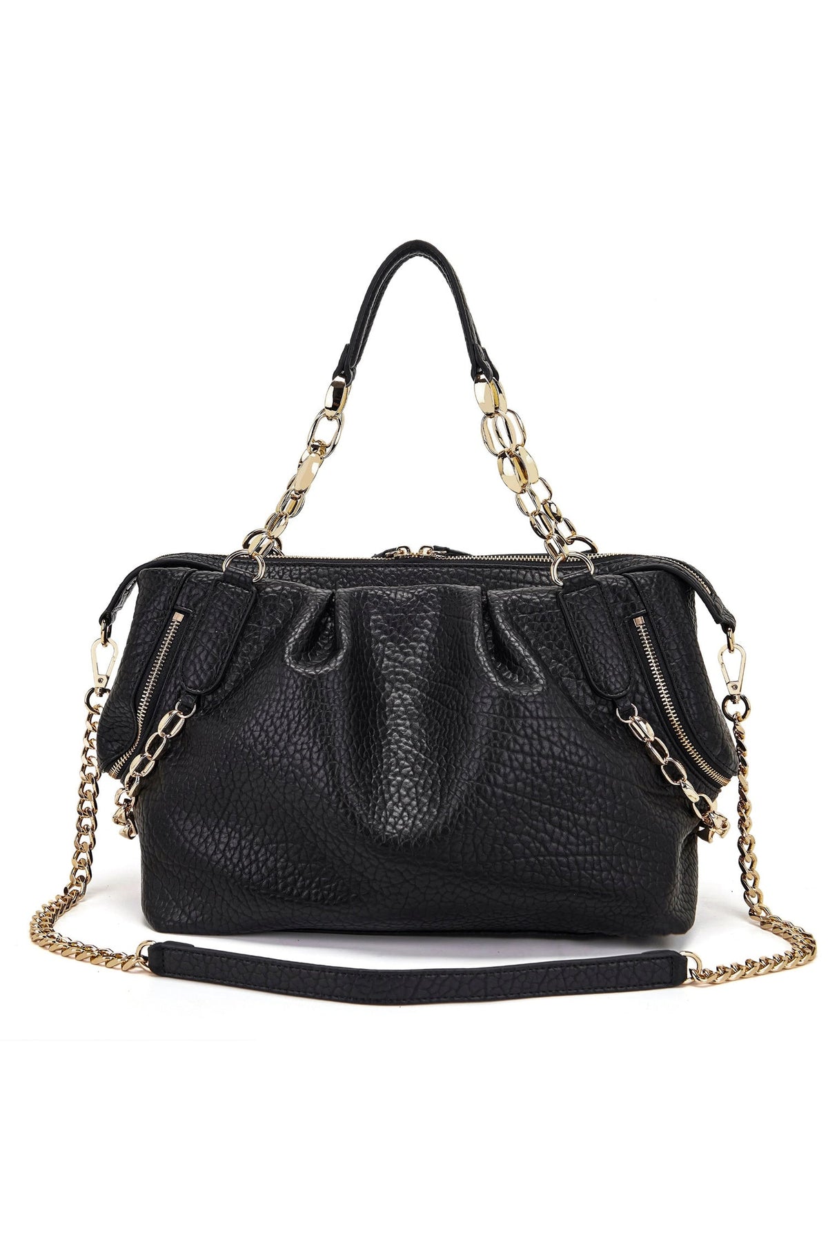 Borsa Shopping in ecopelle martellata, manici in catena, borchie ed accessori dorati, tracolla catena rimovibile