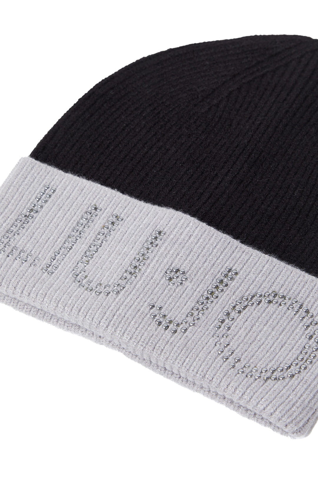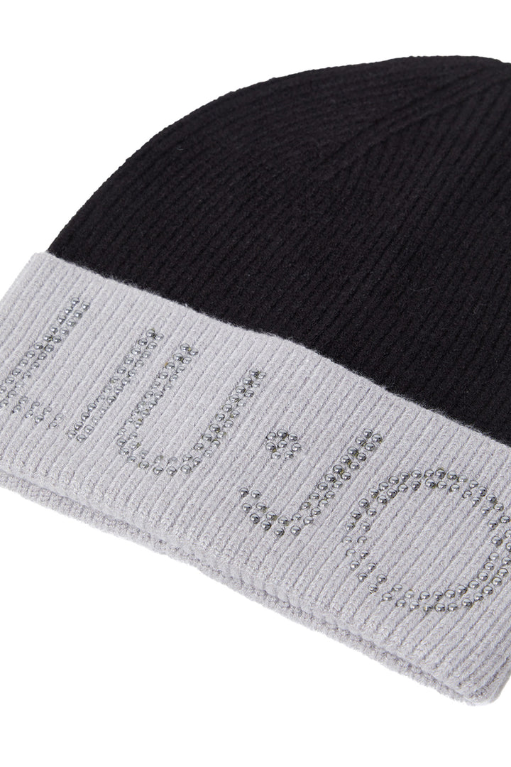 Berretto cammello in maglia con logo e borchieBerretto nero in maglia con logo e borchie
