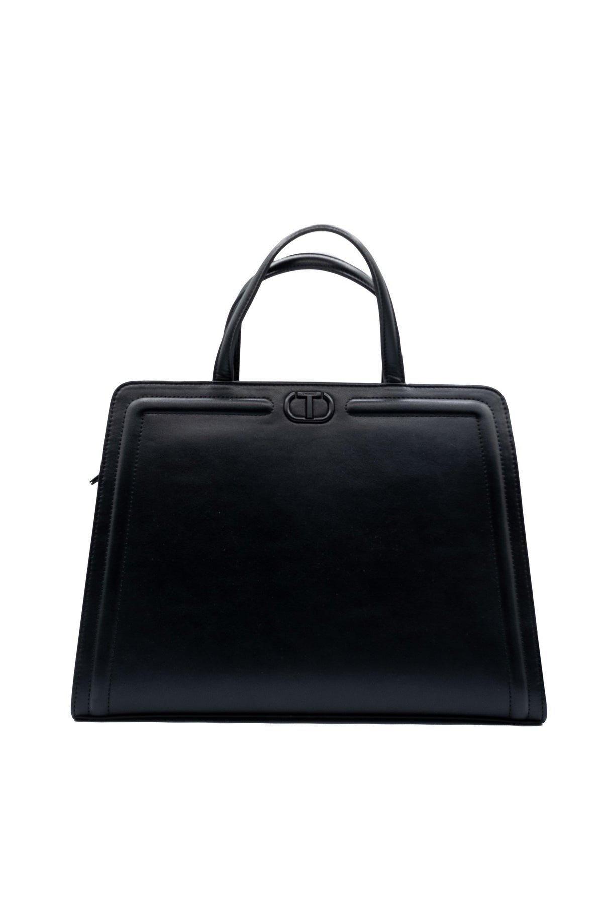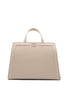 Borsa shopper effetto pelle di vitello liscio con Oval T verniciato in tinta. Ha la chiusura con zip, foderata.