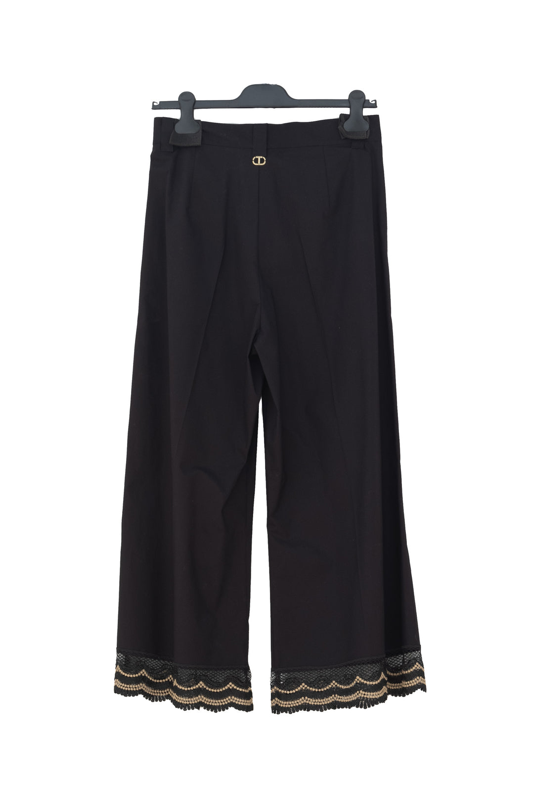 Pantaloni cropped neri in popeline con pizzo bicolore